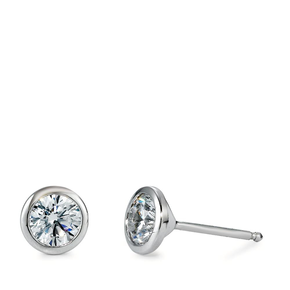 Clous d'oreilles Argent Zircone 2 Pierres Rhodié Ø7 mm