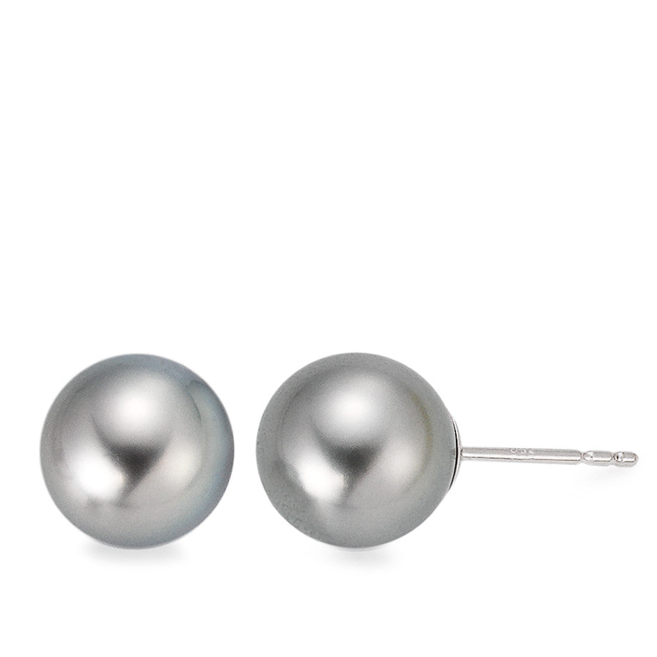 Clous d'oreilles Or blanc 18K perle de Tahiti gris, 2 Perles, 8.5 mm