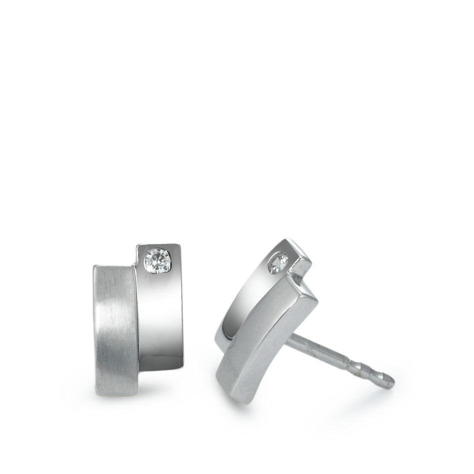 Boucles d'oreilles pour femmes en or blanc 750, élégamment ornées d'un zirconia étincelant. Design moderne avec une finition brossée et polie, parfait pour un style raffiné au quotidien ou pour une occasion spéciale. Un bijou délicat et sophistiqué.