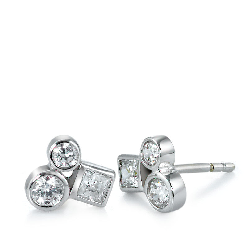 Clous d'oreilles Or blanc 18K Zircone 6 Pierres