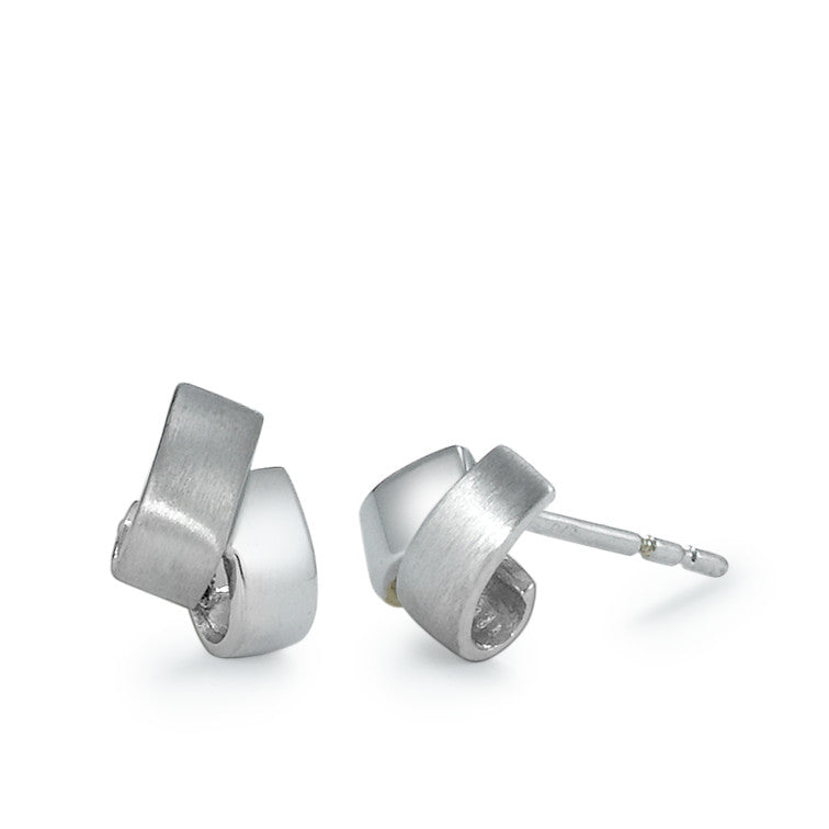 Boucles d'oreilles pour femmes en or blanc 375. Design élégant et moderne, parfait pour un style raffiné au quotidien ou lors d'occasions spéciales. Légères et confortables à porter, ces clous d'oreilles allient sobriété et élégance avec une finition mate et brillante.