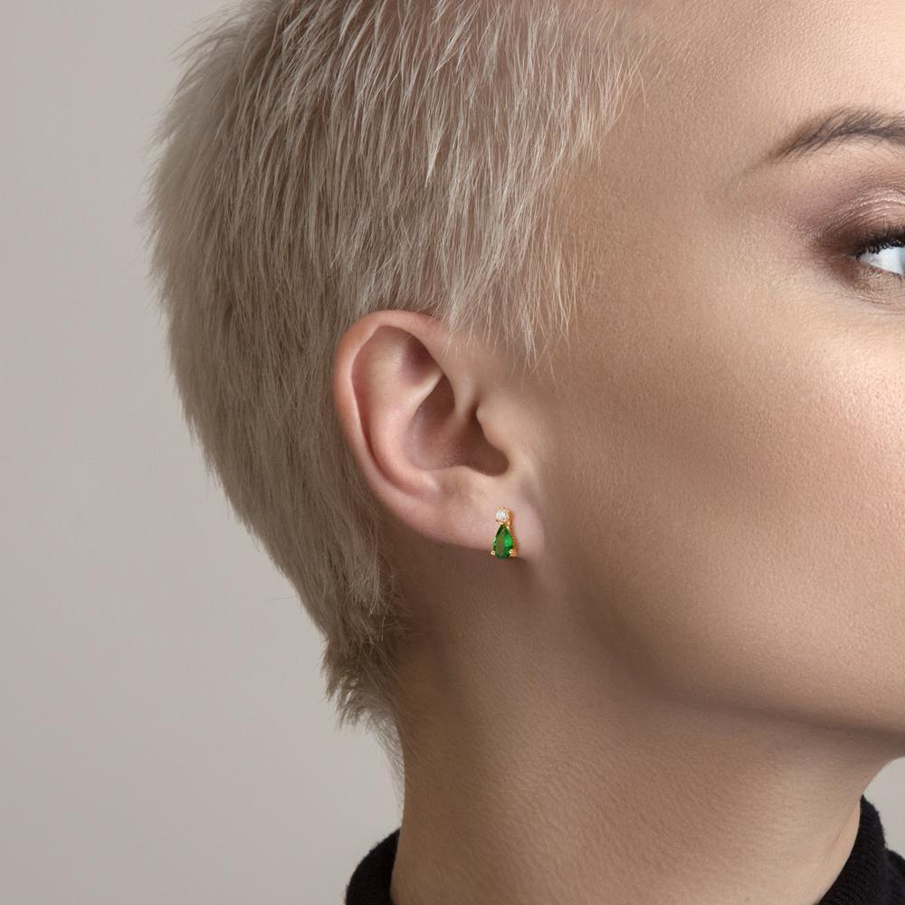 Clous d'oreilles Or jaune 18K Grenat vert, 2 Pierres, Diamant 0.05 ct, w-si