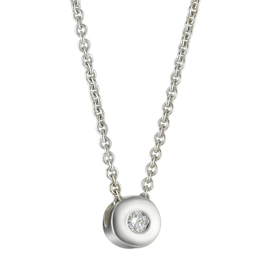 Collier pour femme en or blanc 750 élégant, orné d'un diamant brillant serti en pendentif rond. Un bijou raffiné et intemporel, idéal pour sublimer toutes vos tenues avec une touche de sophistication et de lumière. Parfait pour une élégance quotidienne ou les occasions spéciales.
