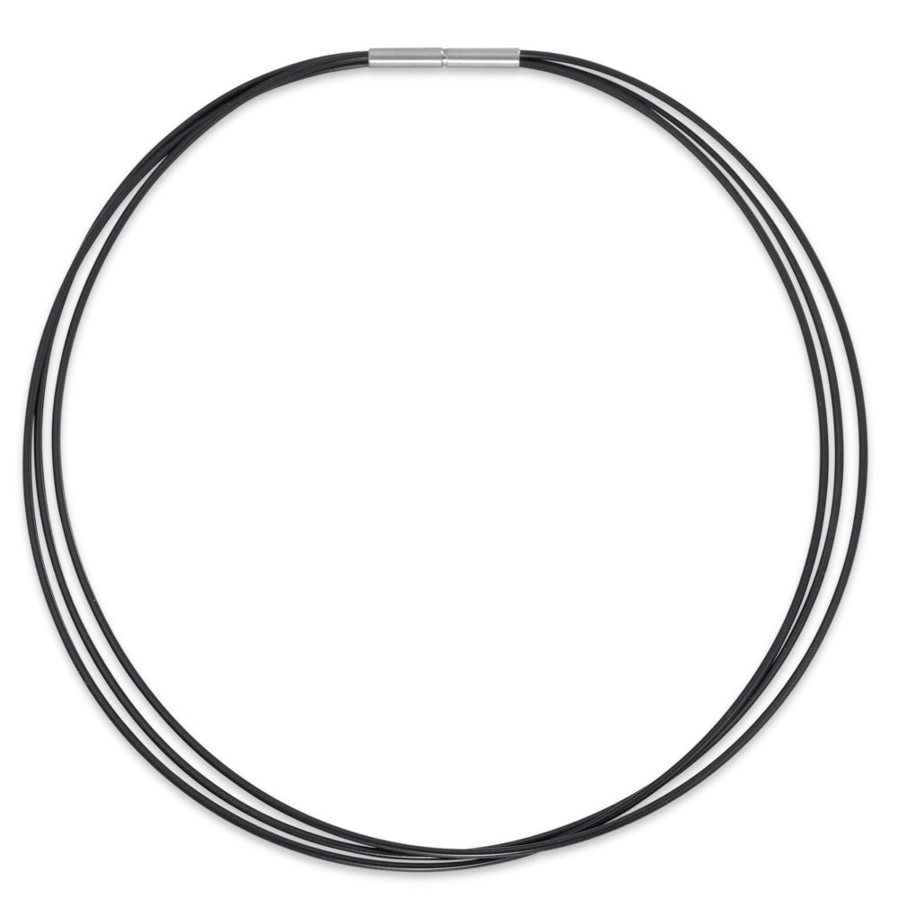 Collier pour femme élégant en acier inoxydable et caoutchouc. Design moderne avec plusieurs fils noirs fins, parfait pour un look raffiné et contemporain. Léger et confortable à porter au quotidien, ce collier s’adapte à toutes les tenues avec style et simplicité.
