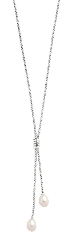 Collier femme en argent élégant avec deux perles blanches suspendues. Chaîne fine et détail moderne, idéal pour sublimer vos tenues au quotidien ou lors d'occasions spéciales. Un bijou raffiné et intemporel, parfait pour une touche de sophistication naturelle.