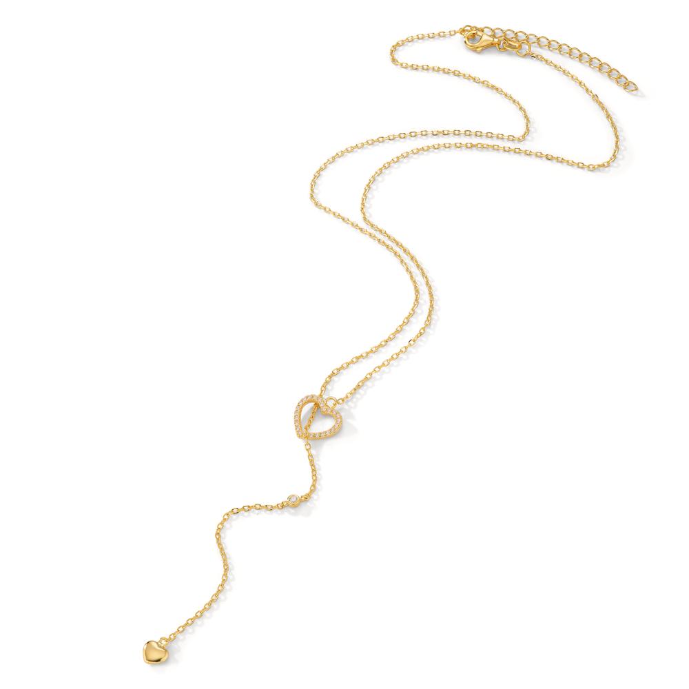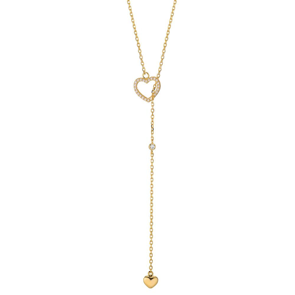 Collier pour femme en argent délicatement doré, orné d'un pendentif cœur pavé de zircones étincelantes. Élégant et raffiné, ce bijou raffiné apporte une touche romantique à toutes vos tenues, parfait pour un cadeau ou pour sublimer votre style au quotidien.
