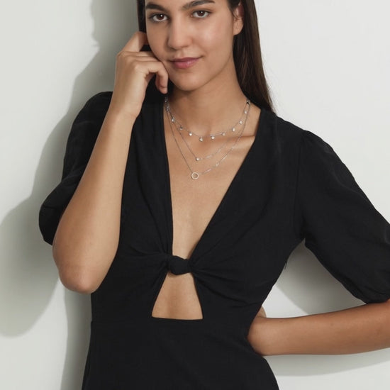 Collier pour femme en argent raffiné, orné de zirconia étincelants. Ce bijou élégant à double chaîne sublime votre décolleté avec un cercle délicat et une pierre centrale brillante, parfait pour toutes les occasions, du quotidien aux soirées spéciales.