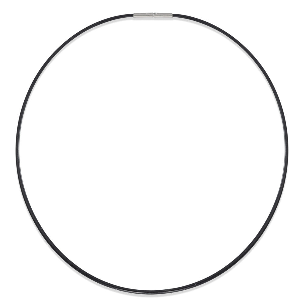 Collier pour dames en caoutchouc noir avec fermoir en acier inoxydable. Design moderne et épuré, parfait pour un style minimaliste et élégant. Léger et confortable à porter au quotidien. Résistant à l'usure, idéal pour toutes les occasions.