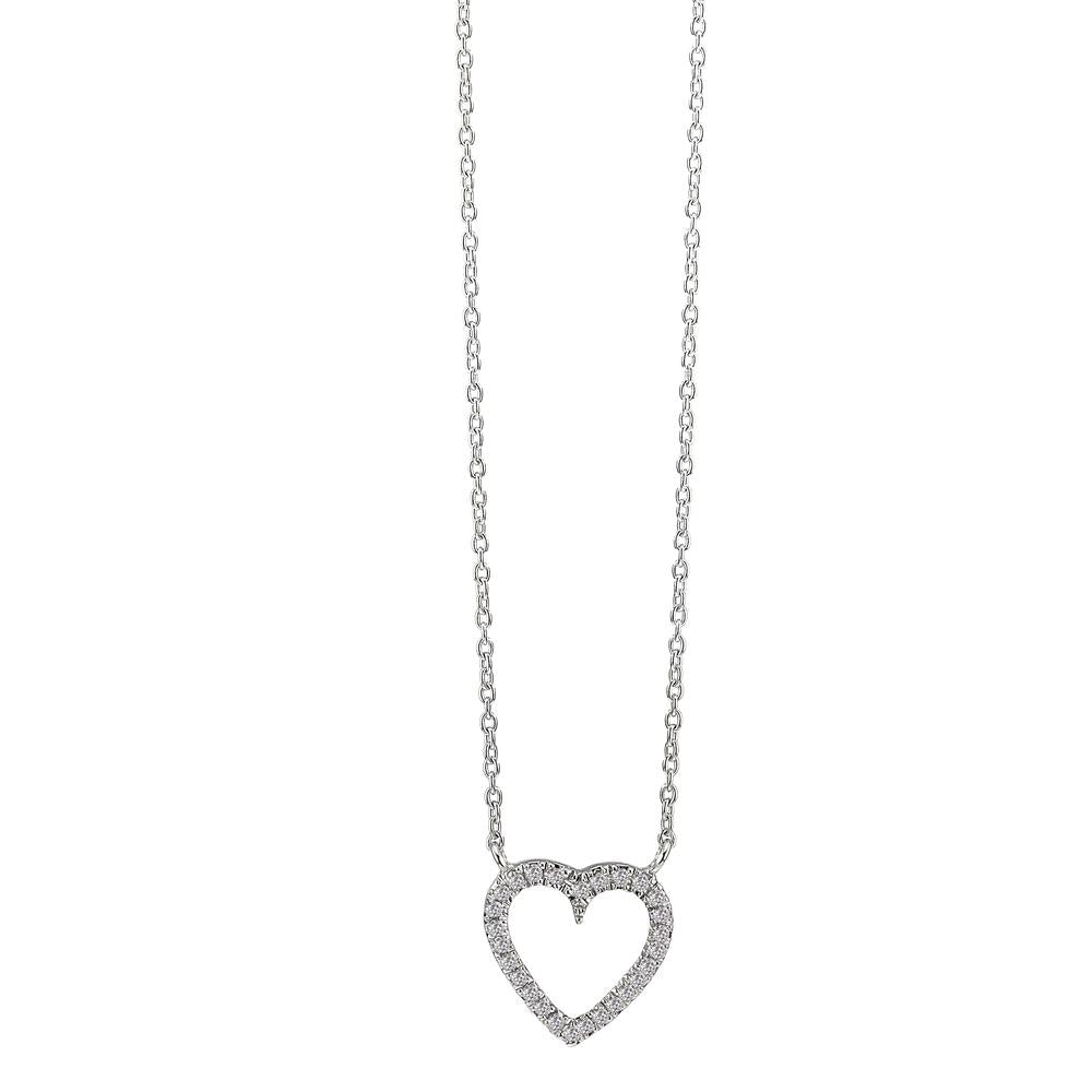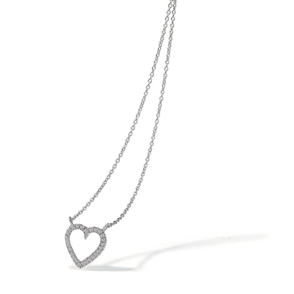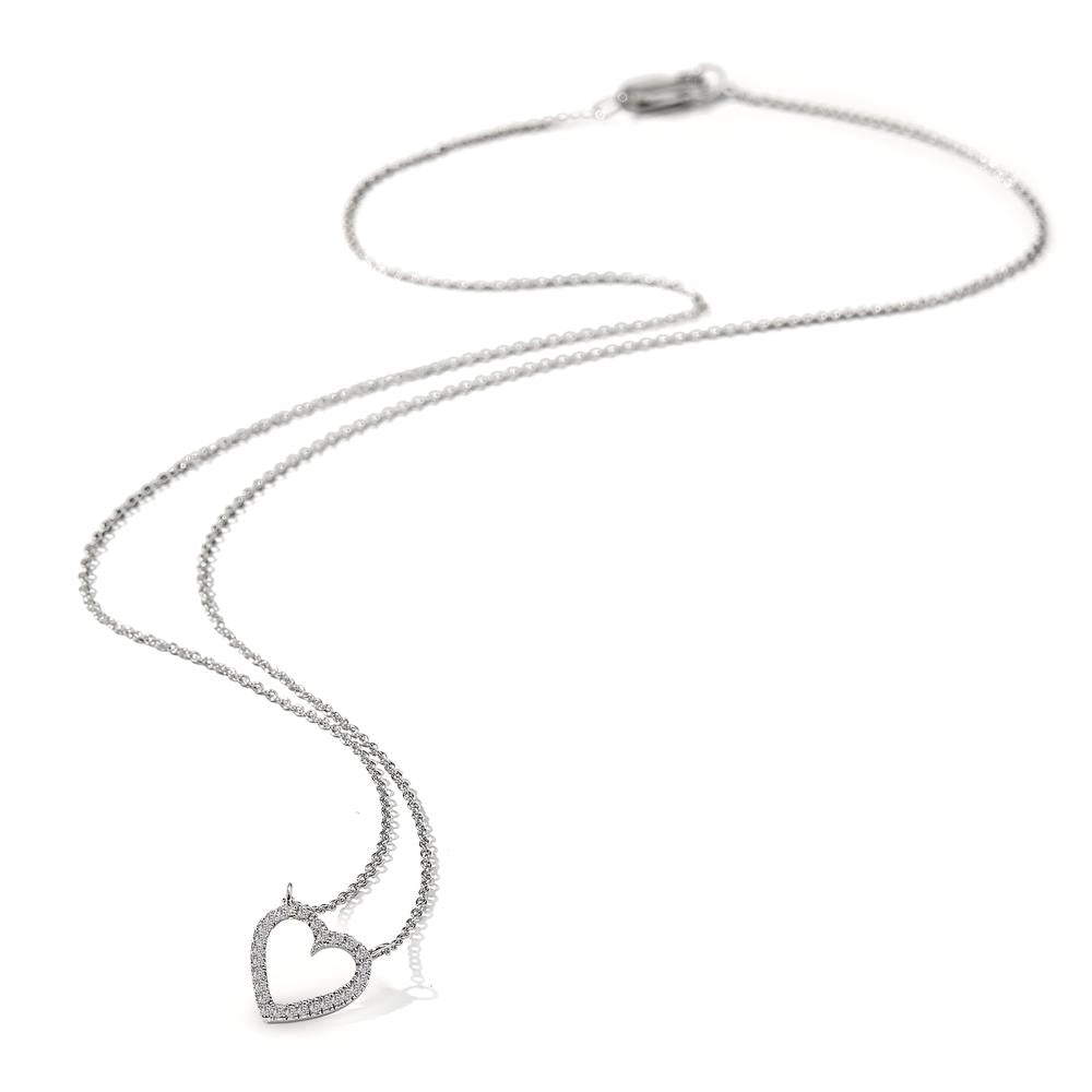 Collier Or blanc 18K Diamant blanc, 0.056 ct, 27 Pierres Coeur 42 cm