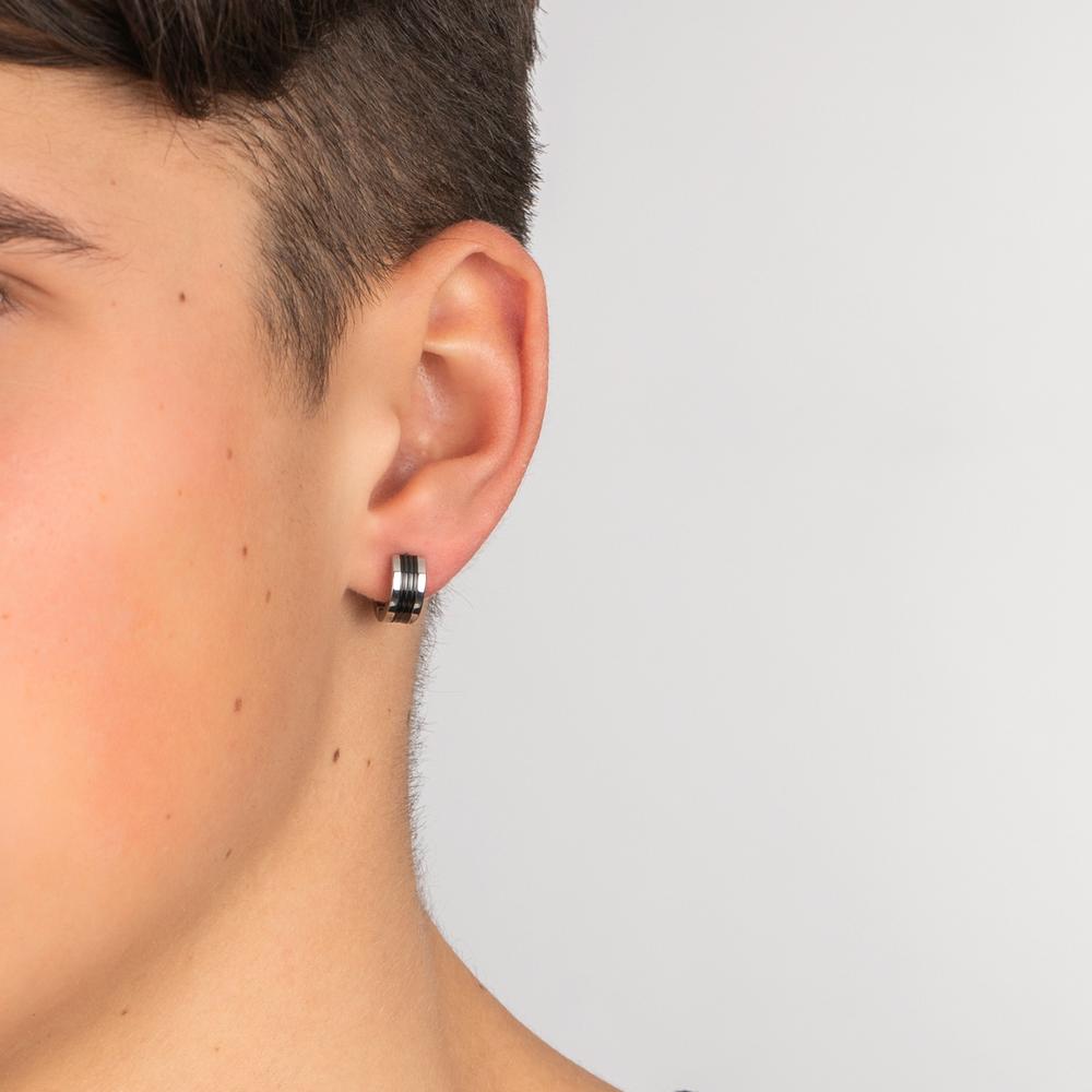 Boucle d'oreille homme en acier inoxydable, design pliable élégant. Cette créole solide et moderne offre un style sobre et masculin, idéale pour un usage quotidien. Un accessoire durable et facile à porter qui complète parfaitement votre look. Livraison rapide, 1 pièce.