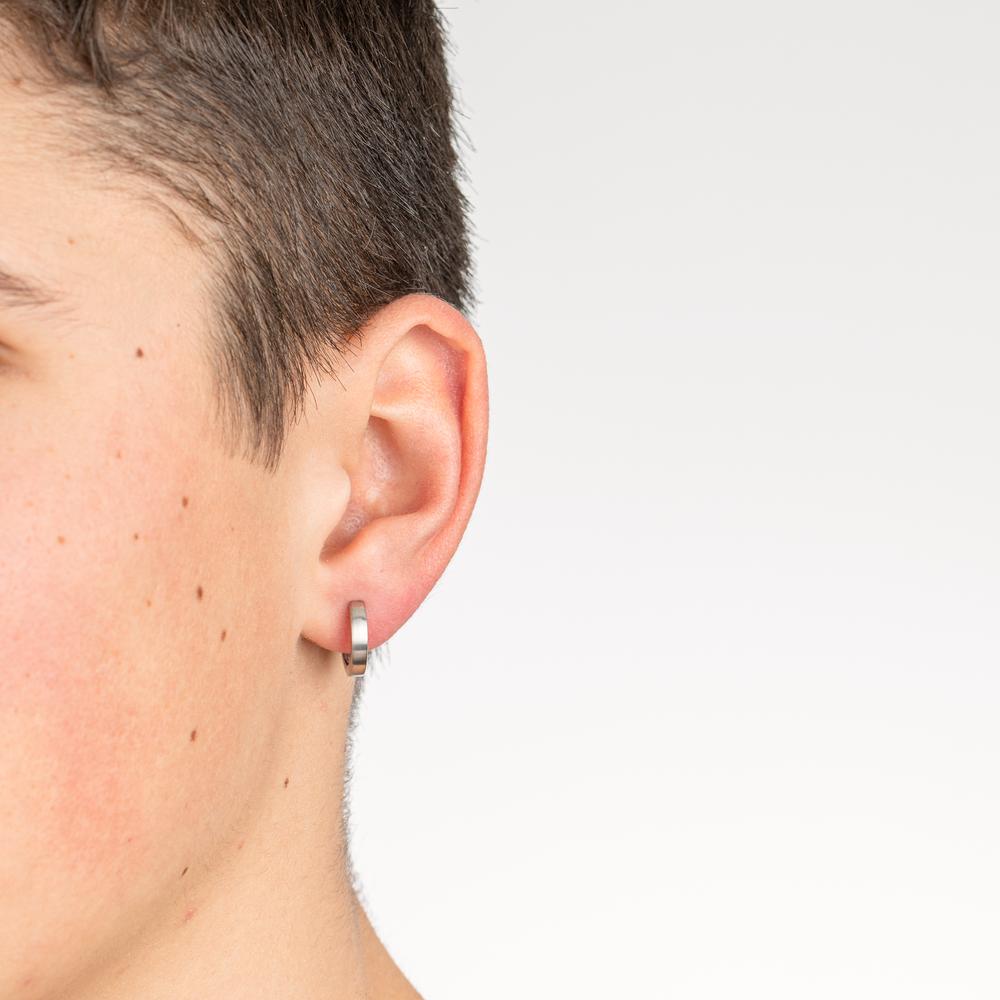 Boucle d'oreille homme en argent, design moderne et élégant. Modèle à clapet pour un maintien sécurisé et un confort optimal. Finition mate, idéale pour un style sobre et masculin au quotidien. Un accessoire minimaliste qui complète avec discrétion toutes vos tenues.