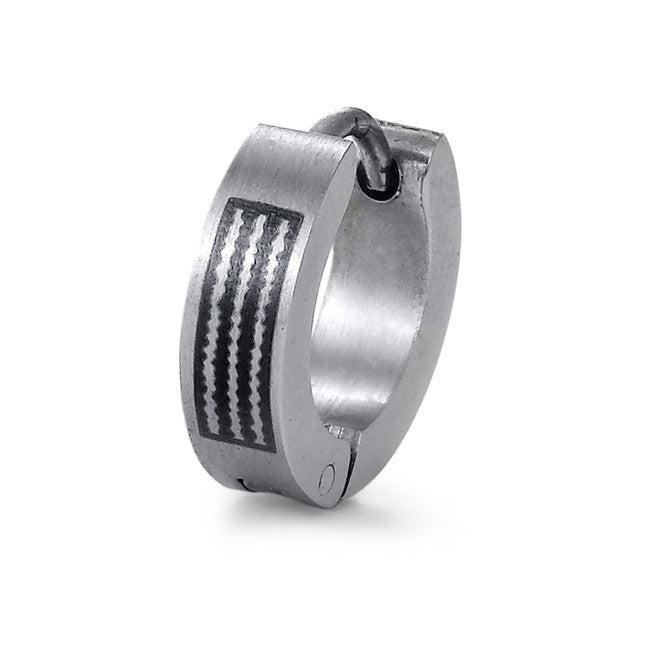 Boucle d'oreille à clip pour homme en acier inoxydable. Design moderne avec motif gravé, solide et durable. Facile à porter grâce à son système à charnière, elle apporte une touche élégante et masculine à votre look quotidien. Parfaite pour un style urbain et contemporain.
