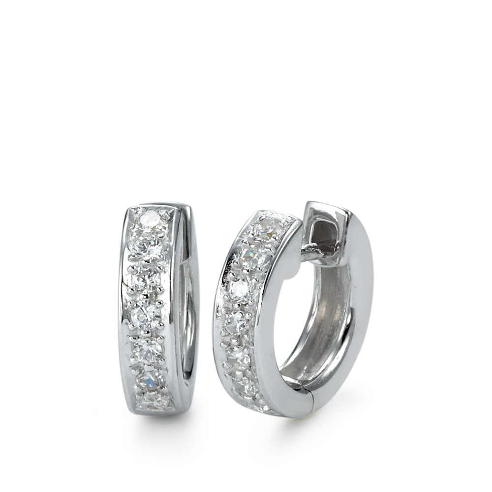 Créoles à charnières Argent Zircone blanc, 14 Pierres Rhodié
