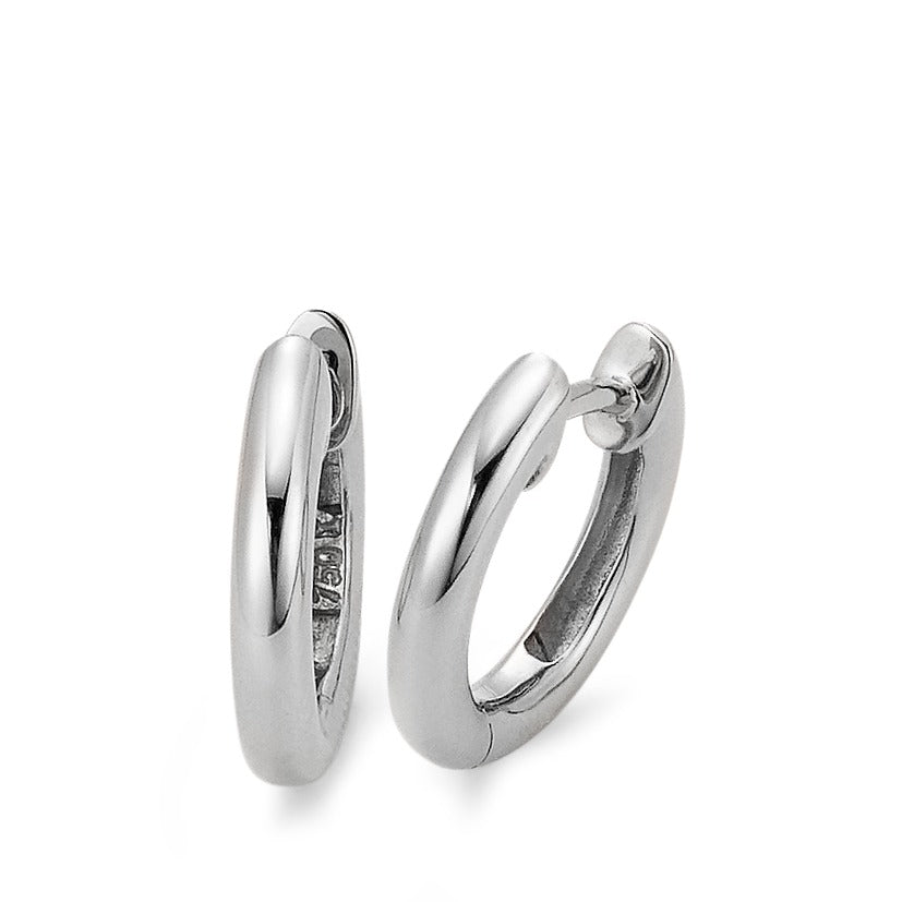 Boucles d'oreilles créoles pour femmes en or blanc 750/1000. Élégantes et intemporelles, ces créoles à fermoir clic-clac allient simplicité et raffinement pour sublimer toutes vos tenues au quotidien ou lors d'occasions spéciales. Un bijou précieux et polyvalent.