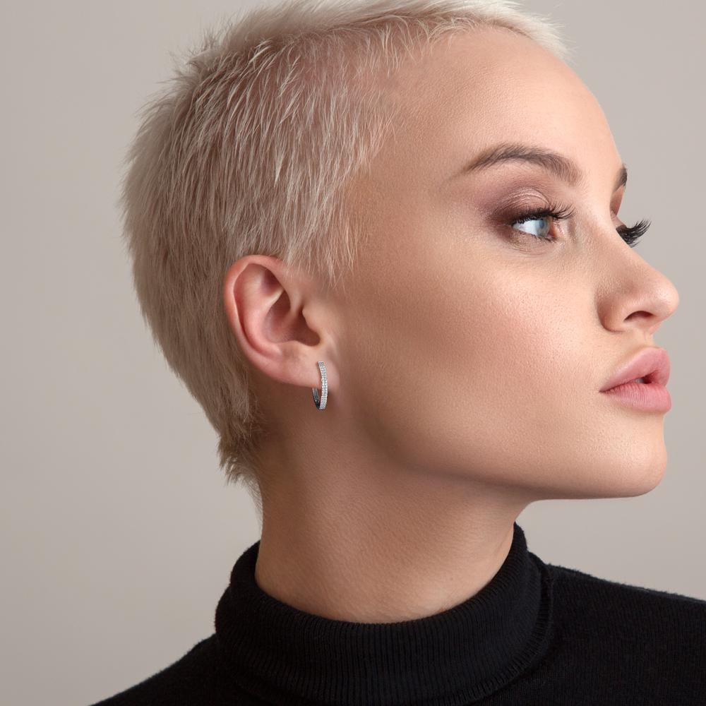 Découvrez ces élégantes créoles pliantes pour femme en or blanc 750, sublimées par un pavage délicat de diamants scintillants. Un bijou raffiné et intemporel qui apporte éclat et sophistication à toutes vos tenues. Parfait pour une touche glamour au quotidien ou pour une occasion spéciale.