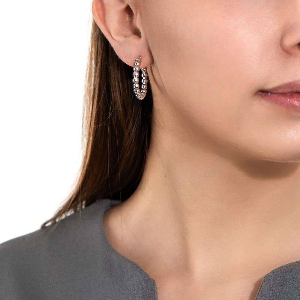 Découvrez ces élégantes créoles pour femmes en argent, au design unique formé de perles arrondies. Leur finition brillante apportera une touche moderne et raffinée à toutes vos tenues, pour un style chic et intemporel au quotidien.