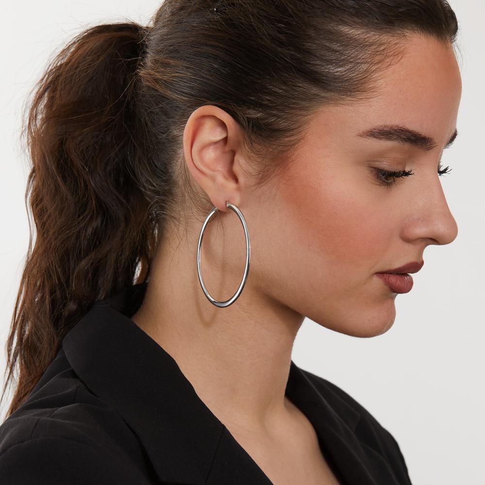 Boucles d'oreilles créoles pour femmes en argent brillant. Leur design classique et épuré met en valeur votre style avec élégance et simplicité. Légères et confortables, elles conviennent à toutes les occasions, du quotidien aux soirées festives. Un bijou incontournable et intemporel.