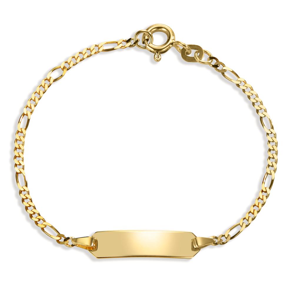 Bracelet gravé pour bébé en or jaune 585, élégant et délicat. Parfait pour graver un prénom ou une date spéciale, ce bijou précieux accompagnera votre enfant avec douceur et raffinement. Idéal comme cadeau de naissance ou baptême.