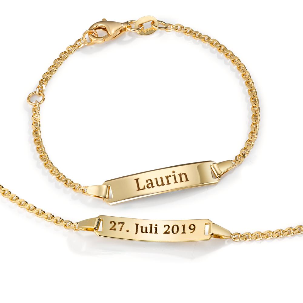 Gourmette avec gravure Or jaune 9K 12-14 cm