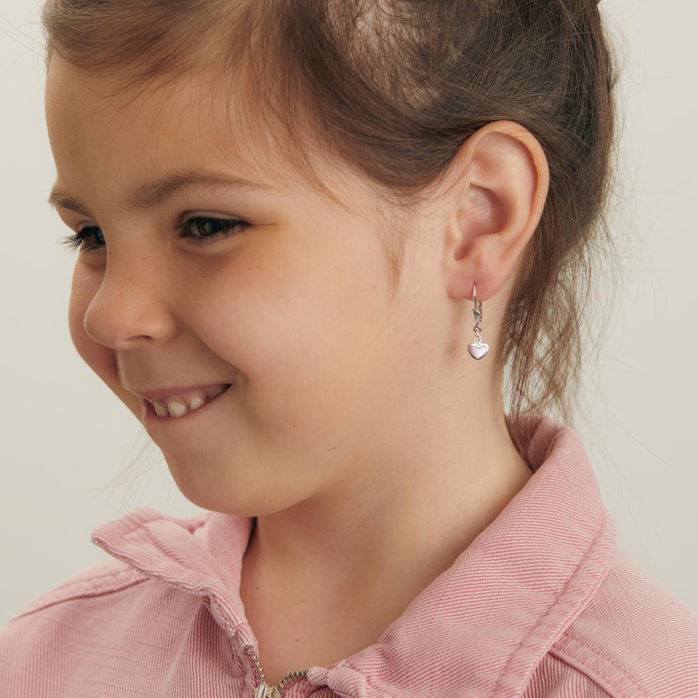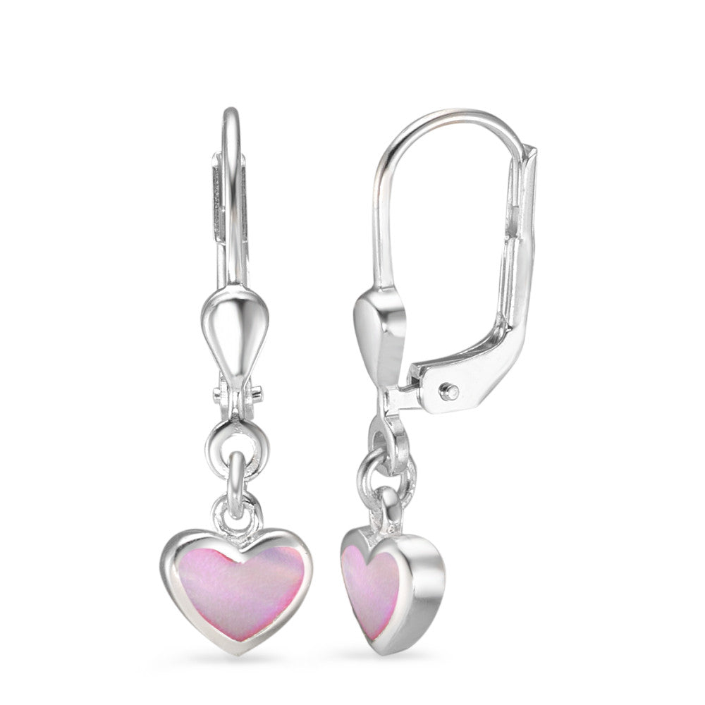 Boucles d'oreilles pour fille en argent, délicatement ornées d'un pendentif en forme de cœur incrusté de nacre rose. Un bijou tendre et élégant, parfait pour accompagner toutes les occasions avec douceur et raffinement. Fermoir sécurisé pour un confort optimal.