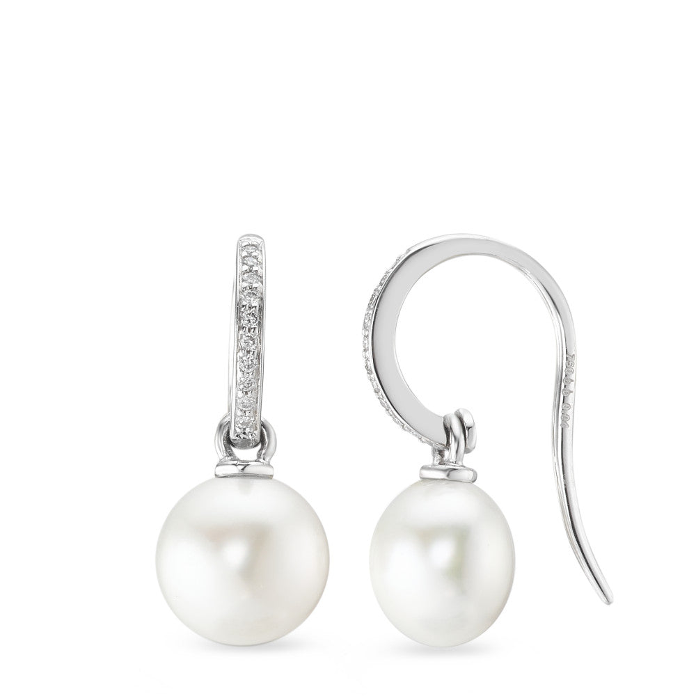 Pendant d'oreilles Or blanc 18K Diamant blanc, 0.08 ct, 20 Pierres, brillant, w-si perle d'eau douce, 20 Perles, 8.5 mm