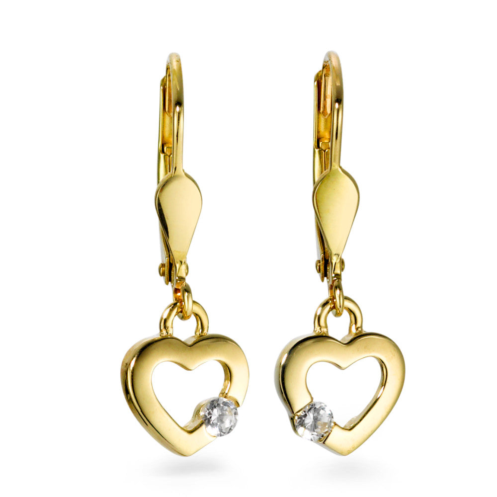 Pendant d'oreilles Or jaune 9K Zircone 2 Pierres Coeur