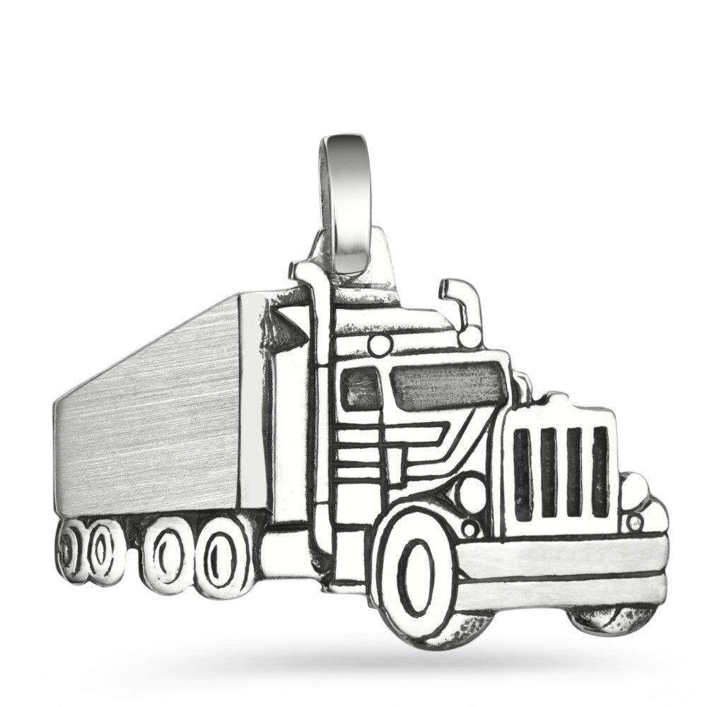 Pendentif pour homme en argent, représentant un camion robuste. Ce bijou allie style et originalité, parfait pour les passionnés de véhicules poids lourds. Un accessoire masculin et tendance qui apporte une touche unique à votre tenue quotidienne.