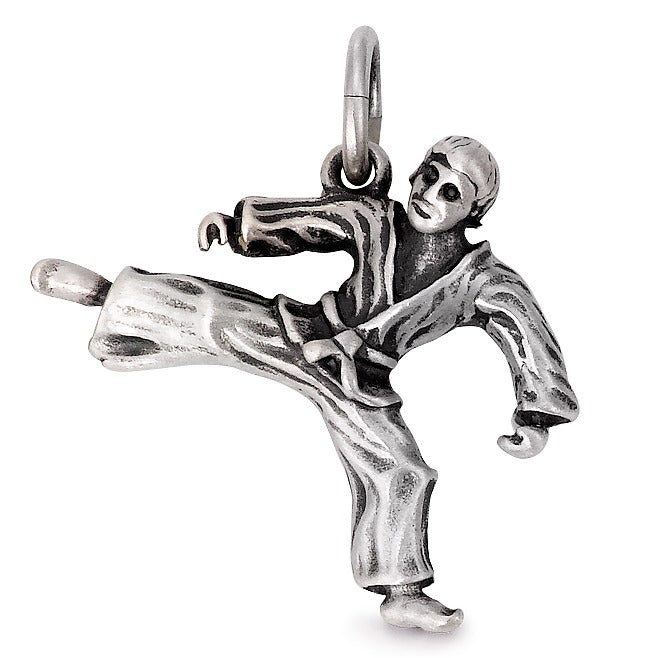 Pendentif homme en argent représentant un artiste de karaté en pleine action. Ce bijou unique allie sport et élégance, parfait pour les passionnés d'arts martiaux. Un symbole de force et de discipline à porter au quotidien avec style.