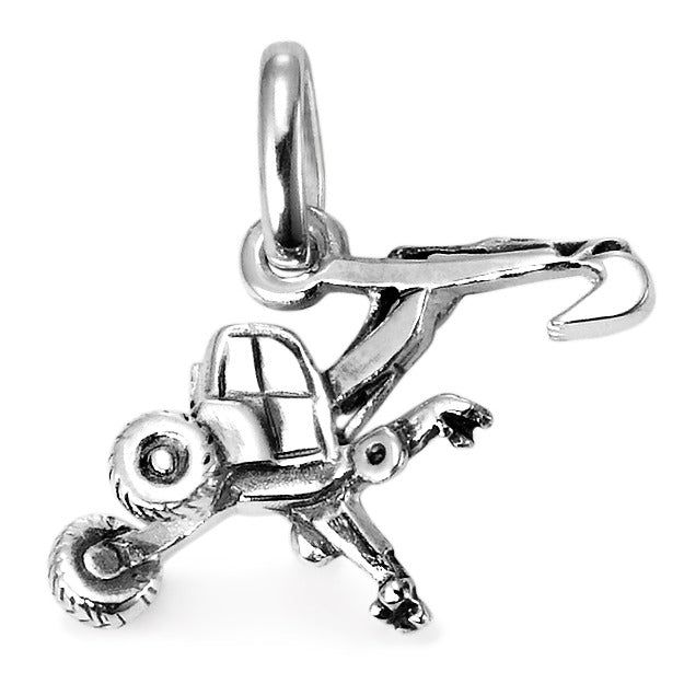 Pendentif homme en argent représentant une Menzi Muck, la mini-pelle multifonctionnelle. Détail soigné, design unique pour les passionnés de machines et travaux. Un bijou masculin original et robuste à porter au quotidien.