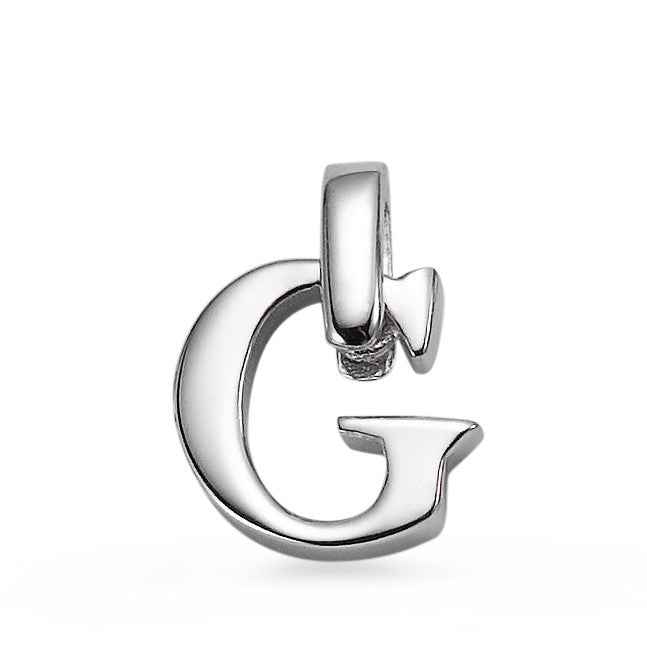 Pendentif pour femme en argent, représentant la lettre "G". Un bijou élégant et sobre, idéal pour personnaliser votre collier ou offrir un cadeau significatif. Finition brillante et design raffiné pour un style délicat au quotidien.
