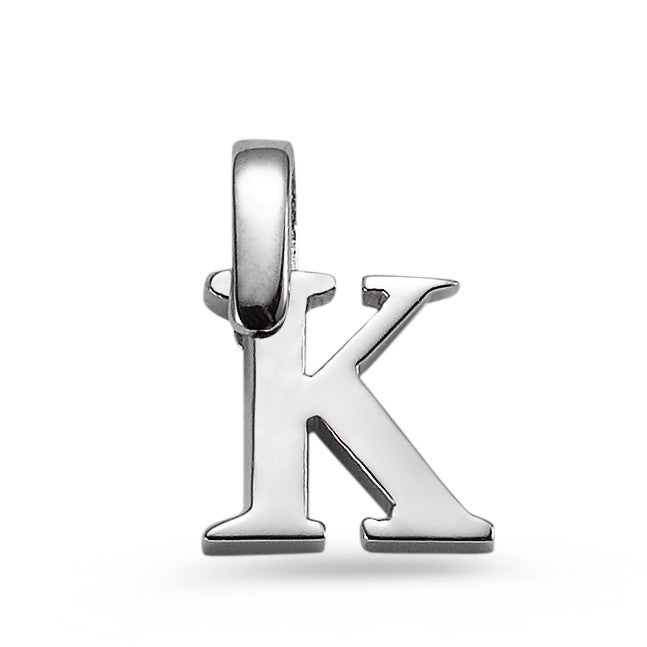 Pendentif pour femme en argent, représentant la lettre "K". Un bijou élégant et personnalisé, parfait pour offrir ou se faire plaisir. Sa finition brillante et son design sobre en font un accessoire idéal pour toutes les occasions. Compatible avec toutes les chaînes standard.