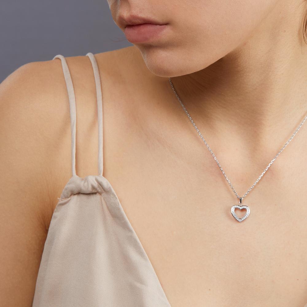 Pendentif pour femme en argent fin, délicatement orné de zircones étincelantes en forme de cœur. Ce bijou élégant et intemporel apportera une touche de charme et de sophistication à toutes vos tenues, parfait pour un cadeau ou pour se faire plaisir.