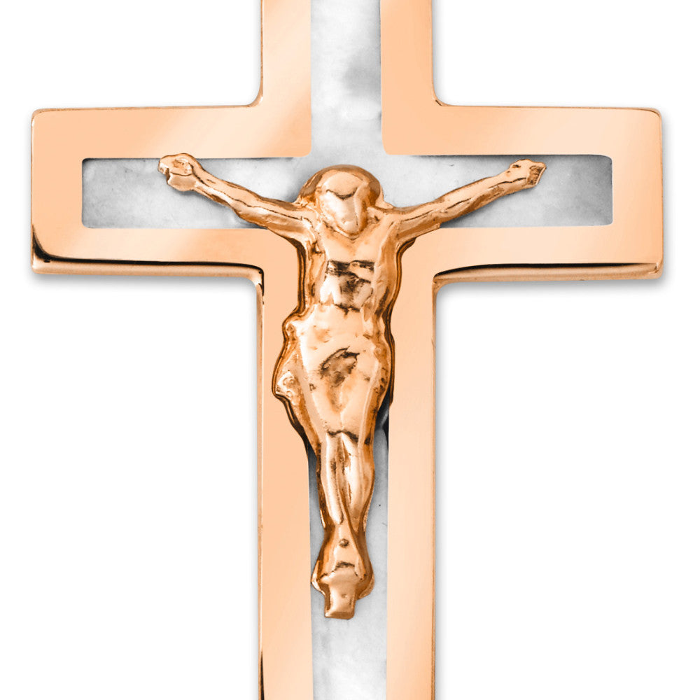 Pendentif croix pour femme en or rouge 375 avec incrustation en nacre. Un bijou élégant et délicat, parfait pour sublimer votre style quotidien ou pour une occasion spéciale. Artisanat raffiné alliant tradition et modernité.