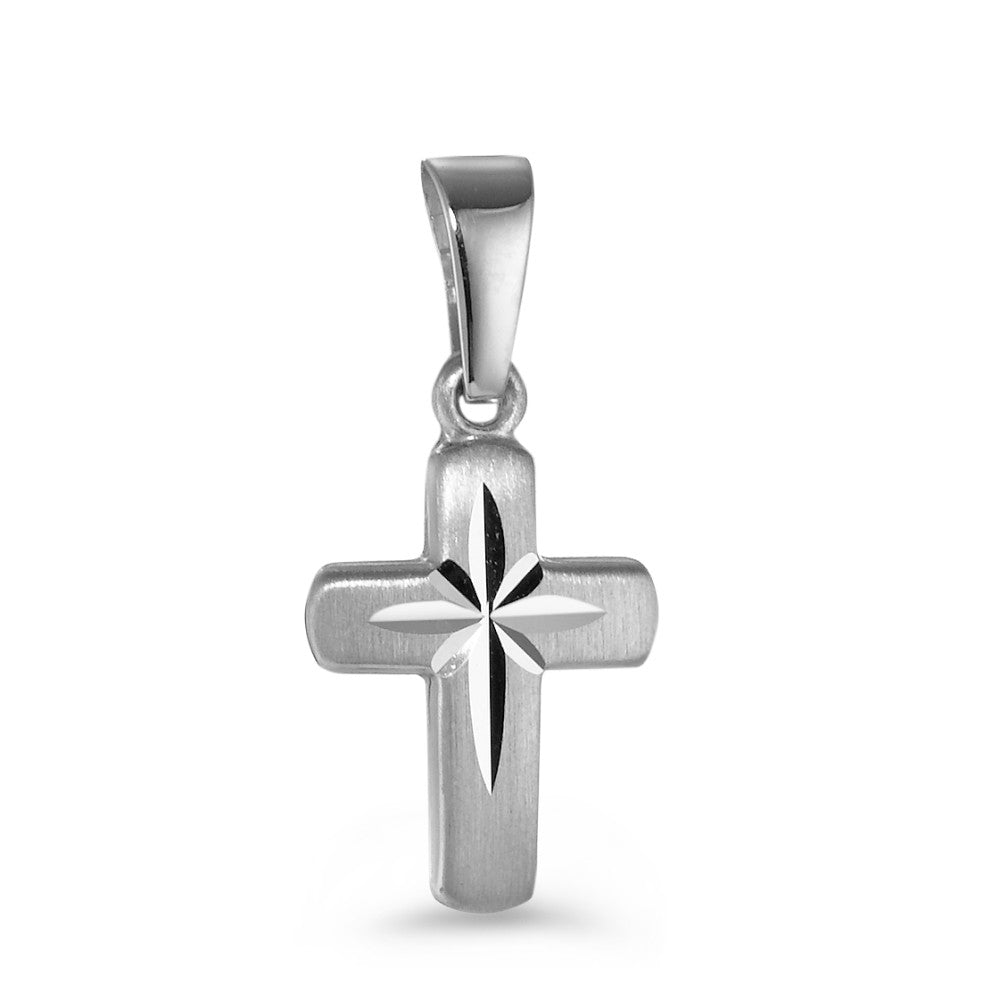 Pendentif croix en or blanc 750, élégant et intemporel. Finition satinée avec motif central poli pour un contraste raffiné. Parfait pour un cadeau symbolique ou une touche d'élégance quotidienne. Un bijou précieux et discret à porter en toute occasion.