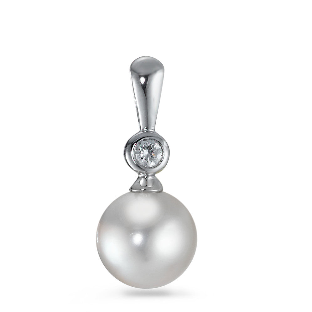 Pendentif Or blanc 18K Diamant 0.035 ct, w-si perle d'eau douce blanc, 8 mm