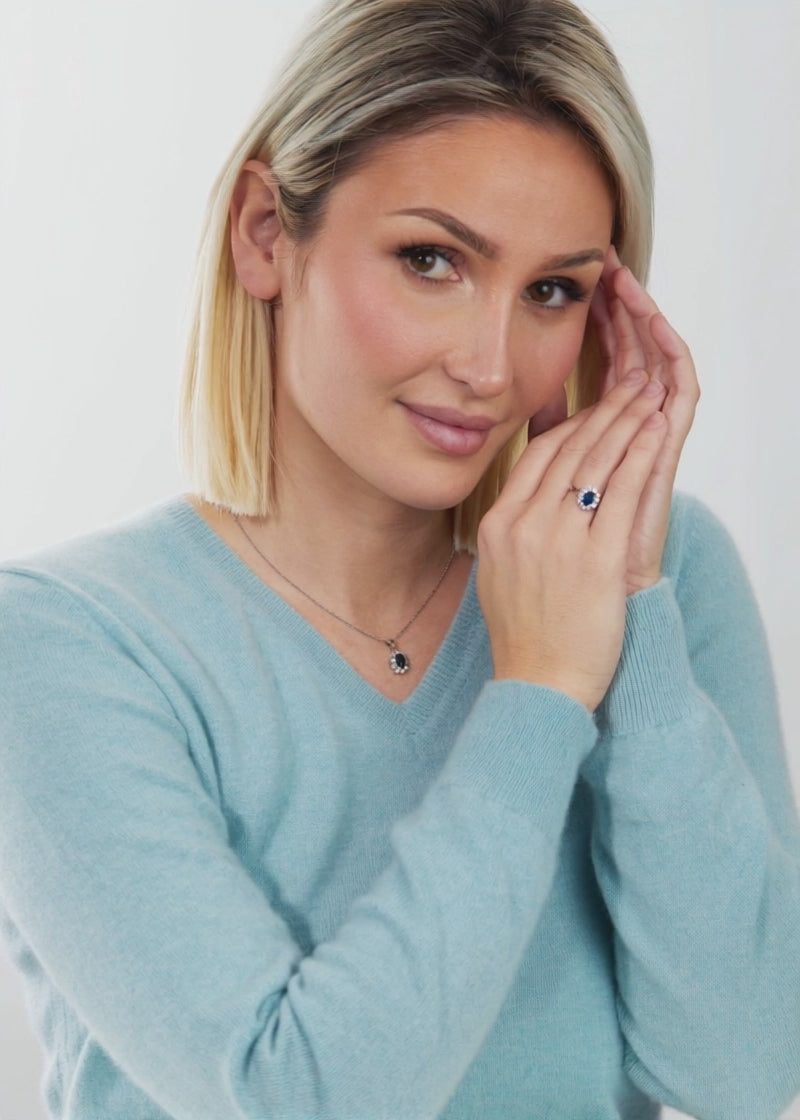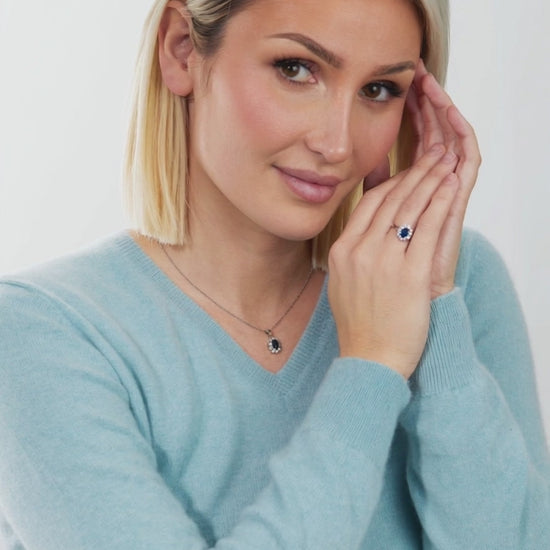 Élégant pendentif pour femme en or blanc 750, serti d’un saphir bleu profond entouré de diamants scintillants. Ce bijou raffiné apporte une touche de luxe et d’éclat à toutes vos tenues, parfait pour un cadeau ou une occasion spéciale.
