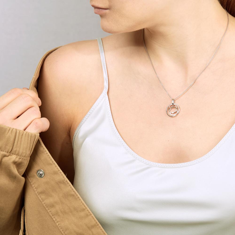 Élégant pendentif pour femme en or blanc 375 et or rose 375, orné d'un diamant étincelant. Ce bijou raffiné allie modernité et délicatesse, parfait pour sublimer toutes vos tenues avec une touche de finesse et d'éclat. Un cadeau idéal pour une occasion spéciale.
