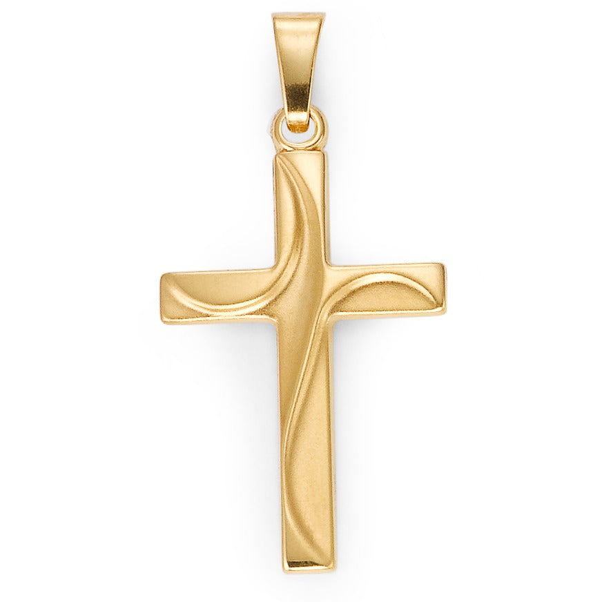 Découvrez ce pendentif en forme de croix, réalisé en or jaune 18 carats (750), alliant élégance et profondeur spirituelle. Son design épuré et ses courbes délicates en font un bijou intemporel, parfait pour une touche raffinée au quotidien ou une occasion spéciale.